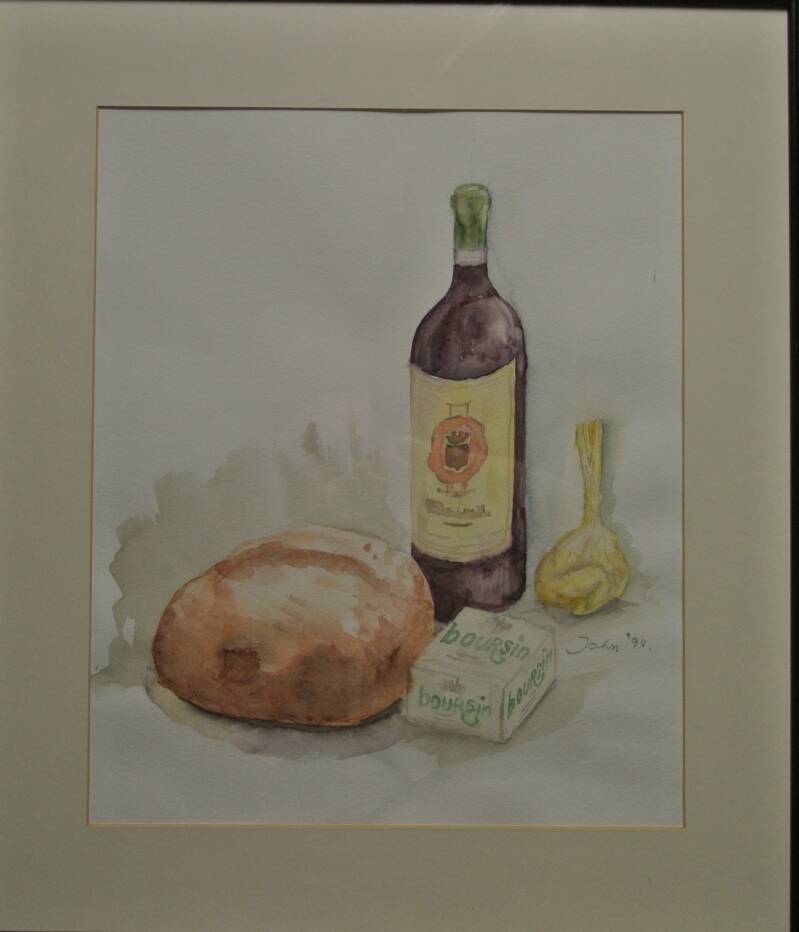 79.titel : Pain ,vin et fromage (52x46cm ) aquarel